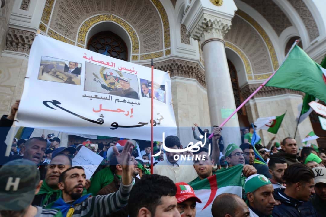 وقد رفع المتظاهرون شعارات ولافتات، مطالبة برحيل بن صالح رئيس الدولة، وجميع تركيبة النظام القديم، والتي يعتبرونها جزءا من النظام ويطالبون برحيلها.