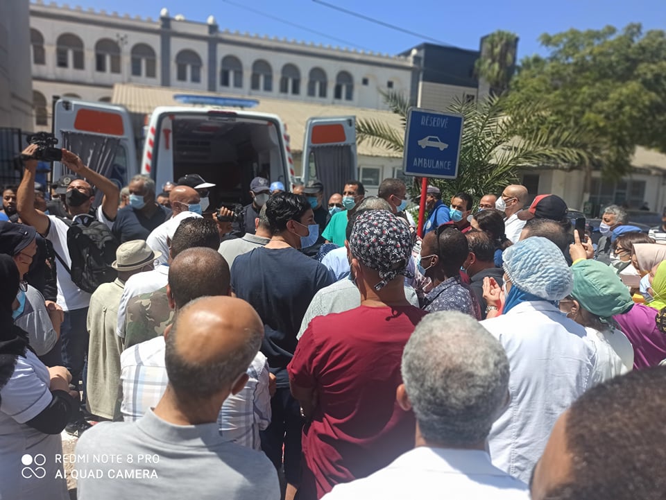 وقد تجمع بساحة مصلحة الاستعجالات الطبية والجراحية عائلة الفقيد، وجمع من الاساتذة رؤساء المصالح الاستشفائية والطبية ورفقائه وزملائه وكل من عرفوه من قريب أو من بعيد.