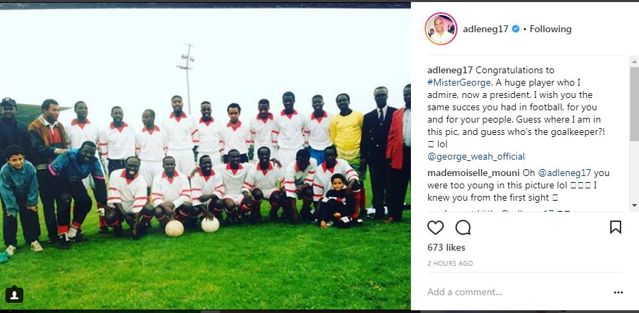 وأرفق “عدلان” التعليق بصورة له رفقة منتخب ليبيريا أيام وجود “جورج ويا” وقال:”حاولوا إيجادي في الصورة”.