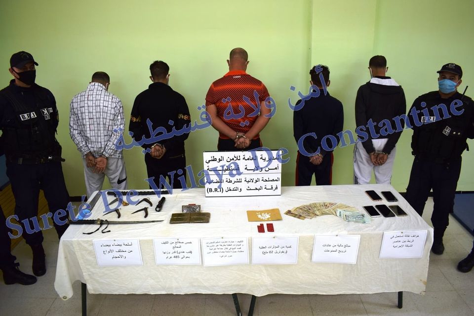 وتمكنت فرقة البحث و التدخل “BRI” بأمن ولاية قسنطينة، من تفكيك شبكة اجرامية مكونة من 05 أشخاص تتراوح أعمارهم ما بين 23 و 55 سنة لضلوعهم في قضية حيازة، تخزين و تسليم للمخدرات و المؤثرات العقلية بطريقة غير مشروعة قصد البيع في اطار جماعة اجرامية منظمة ، حيازة أسلحة بيضاء محظور ة دون مبرر شرعي .