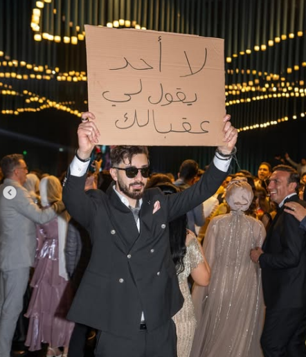 أين مسك لافتة كبيرة مكتوب عليها “لا أحد يقول لي عقبالك” وقد نشر الصور على حسابه على إنستغرام. إلا أنه بعد أقل من عام من هذه الصورة أعلن خطبته.