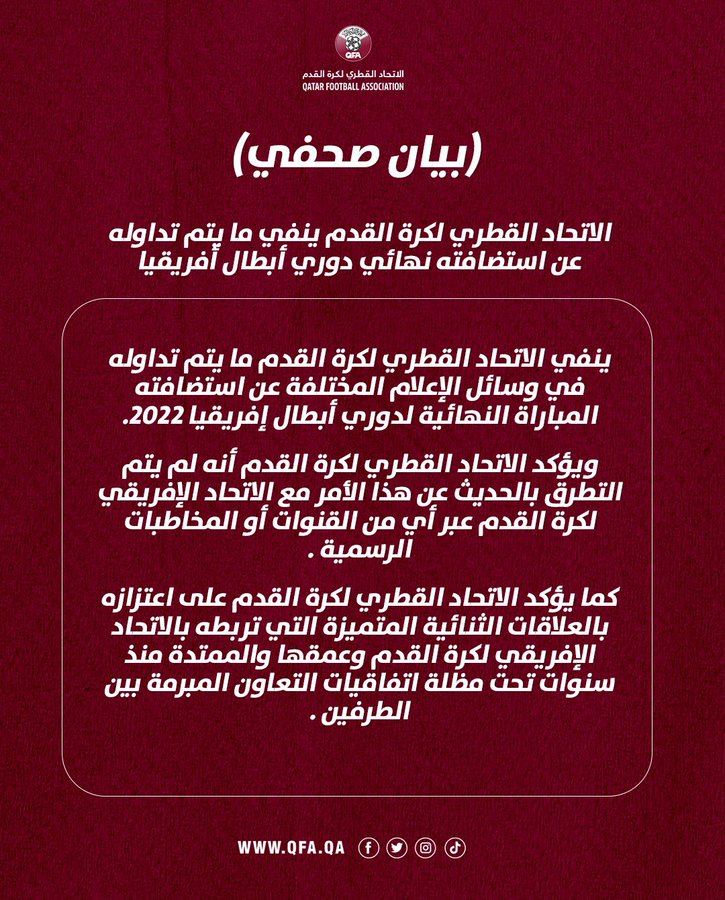 الاتحاد القطري لكرة القدم نشر اليوم الإثنين بيانا رسميا جاء فيه: