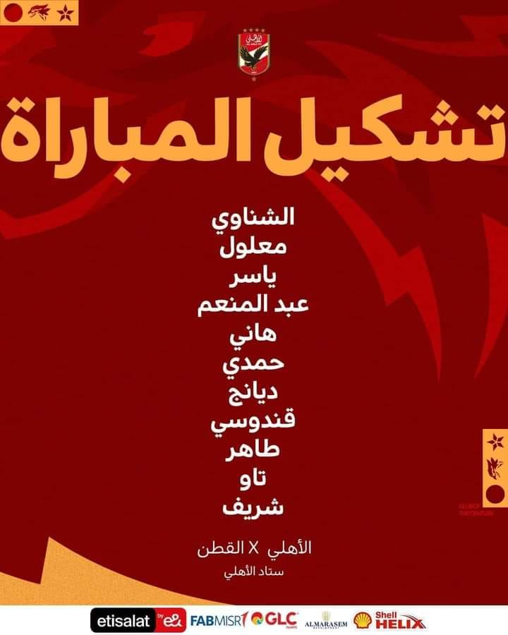 وكشفت إدارة النادي الأهلي، تشكيلتها الأساسية التي ستبدأ بها هذه المواجهة، والتي سهدت تواجد اسم قندوسي.