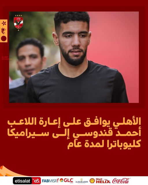 وقالت إدارة نادي الأهلي المصري، عبر الصفحة الرسمية على “تويتر”: “الأهلي يوافق على إعارة أحمد قندوسي إلى سيراميكا كليوباترا لمدة عام”.