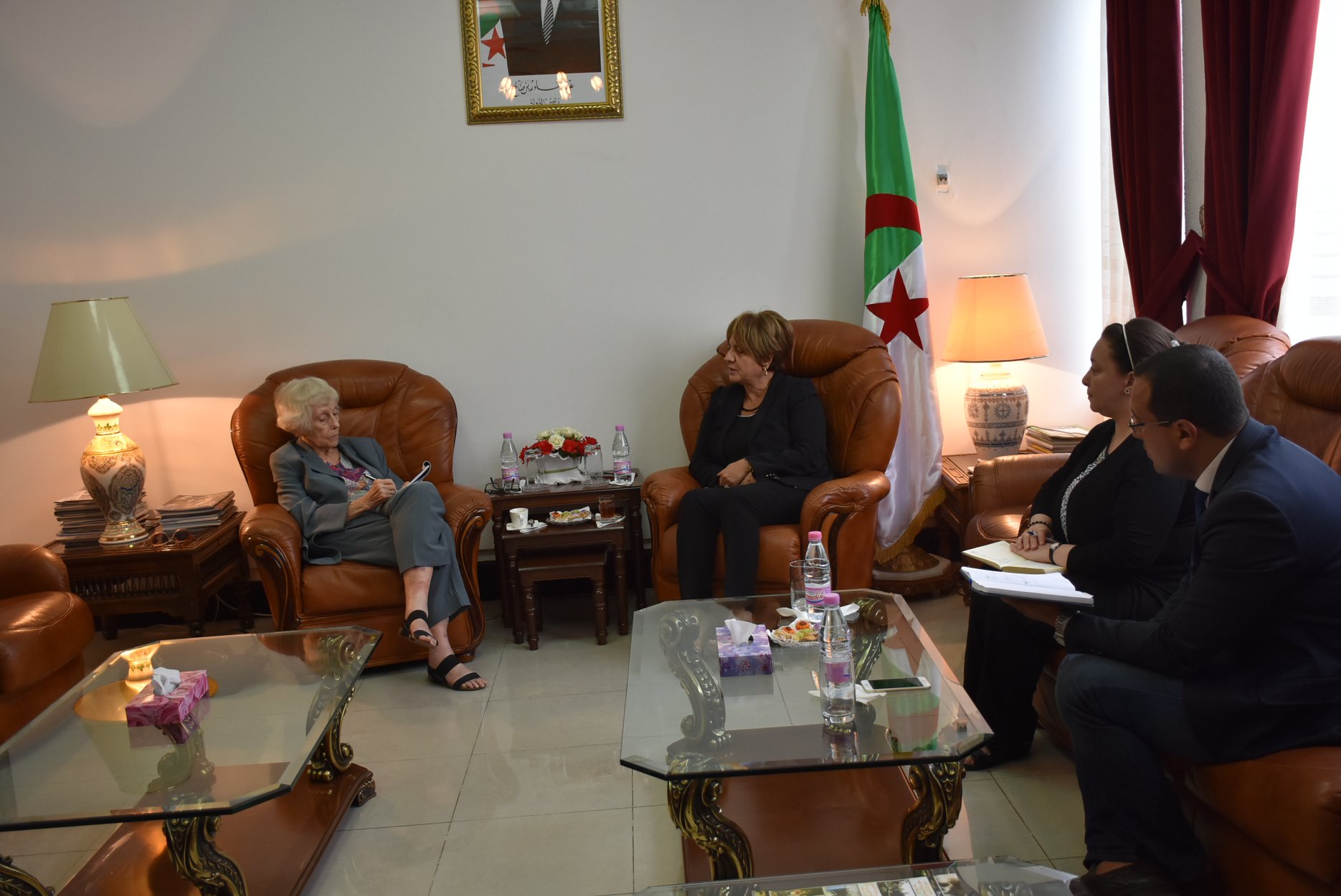 واستقبلت وزيرة التضامن غنية الدالية اليوم الكاتبة الصحفية الأمريكية بطلب من هذه الأخيرة وذلك في إطار مهمة جمع المعلومات لتأليف الكتاب.