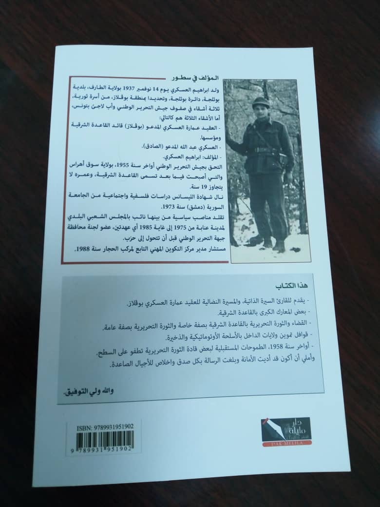 هذا الكتاب الذي ألّفه شقيقه إلمجاهد إبراهيم العسكري يحتوي شهادات حية ووثائق نادرة لتاريخ القاعدة الشرقية، كما يبرز ملامحها ورموزها.