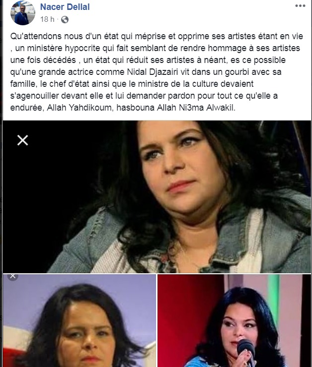 وراح آخرون إلى وضع صور الممثلة على غلاف حساباتهم على الفايسبوك، مطالبين السلطات المحلية بمنحها سكنا لائقا في أقرب الآجال.