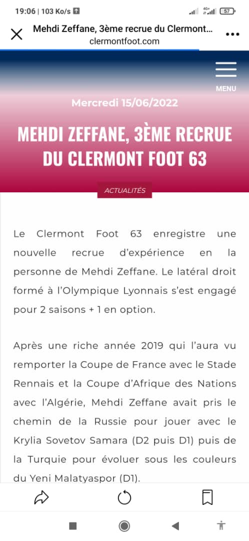 أعلن فريق كليرمون فووت 63 الفرنسي بصفة رسمية أمسية اليوم الأربعاء عن التعاقد مع، مهدي زفان.