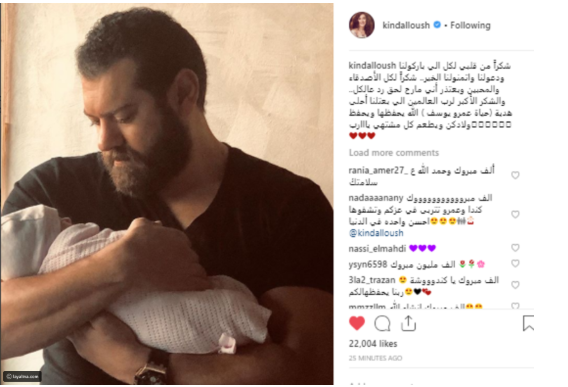 للإشارة، تفاعل محبو كندة مع كلماتها، داعين الله أن يرزق ابنتهما بالصحة والسعادة للعائلة الصغيرة.