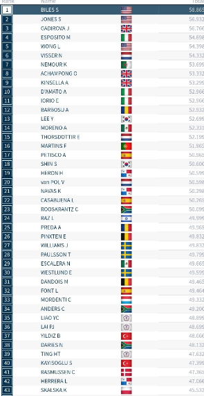 كما أرحزت لاعبة الجمباز الجزائرية، المركز السادس في سباق التأهل لنهائي الفردي العام، والمركز الثاني في جهاز المتوازي.