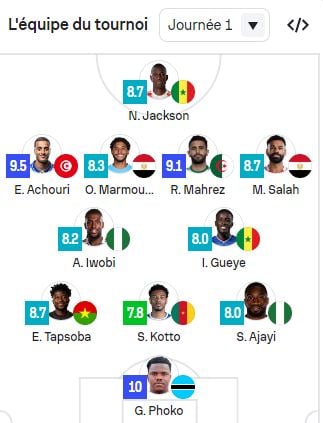 وكانت الجزائر، حاضرة في تشكيلة جولة الافتتاح، عن طريق القائد رياض محرز. الذي تحصل على تقييم 9.1، بعد تسجيله “دوبلي” في الفوز بثلاثية نظيفة أمام السودان.
