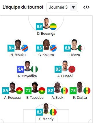 بينما تواجد نجم “الخضر” الصاعد، ابراهيم مازة، في التشكيلة المثالية خلال الجولتين الـ 2 والـ 3. بتقييم 8.1/10 و8.8/10 على التوالي. بعد أداءه المميز في مواجهة بوركينافاسو، وجولة الختام أمام غينيا الاستوائية، بتسجيله هدفا من ثلاثية المنتخب.