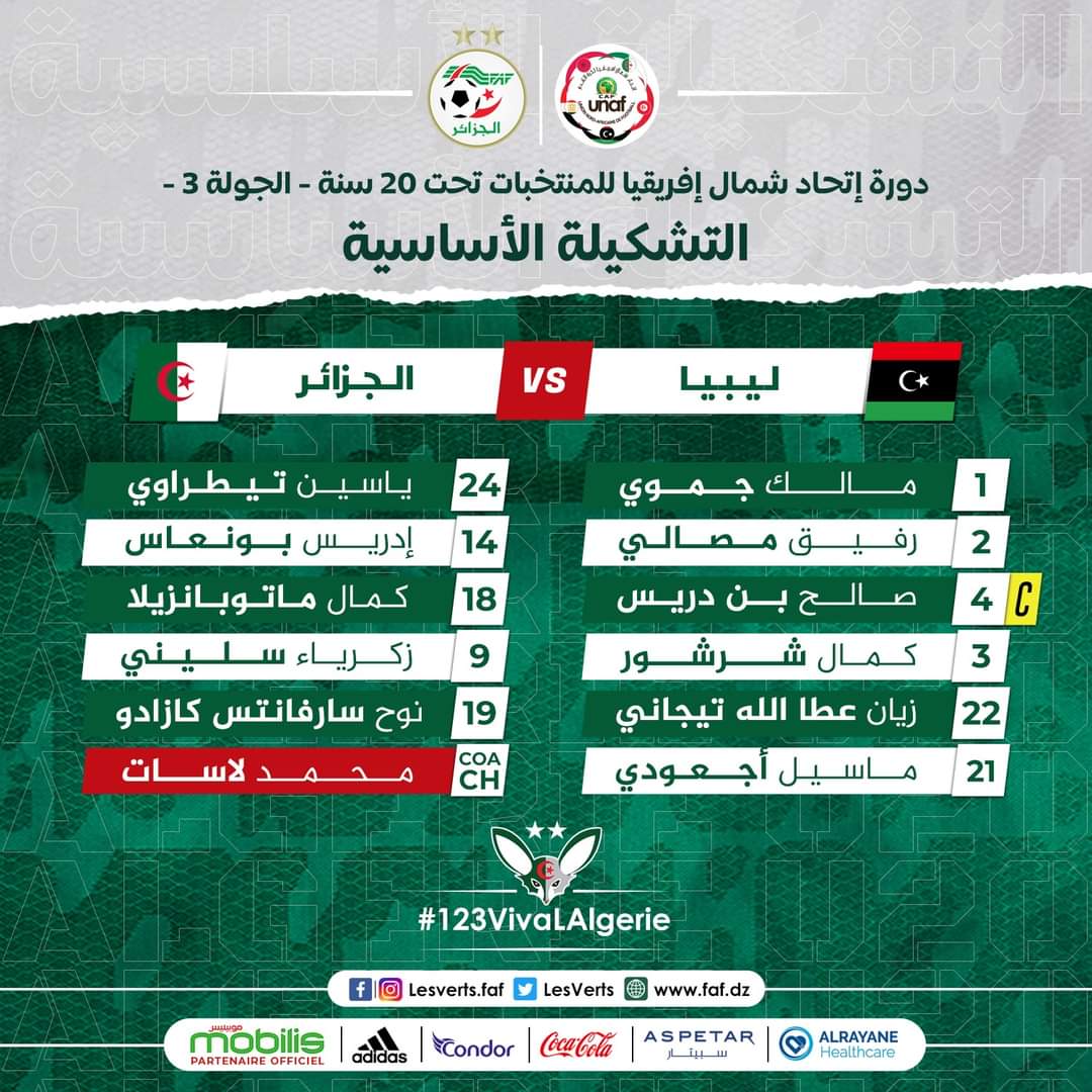 كشف مدرب المنتخب الوطني لأقل من 20 عاما، محمد لاسات، عن التشكيلة الأساسية التي سيعتمد عليها في مواجهة ليبيا، ضمن منافسة لوناف.