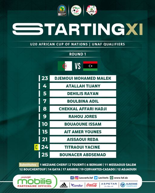 كشف محمد لاسات مدرب المنتخب الوطني لأقل من 20 سنة عن التشكيلة الاساسية التي سيعتمد عليها أمام منتخب ليبيا.