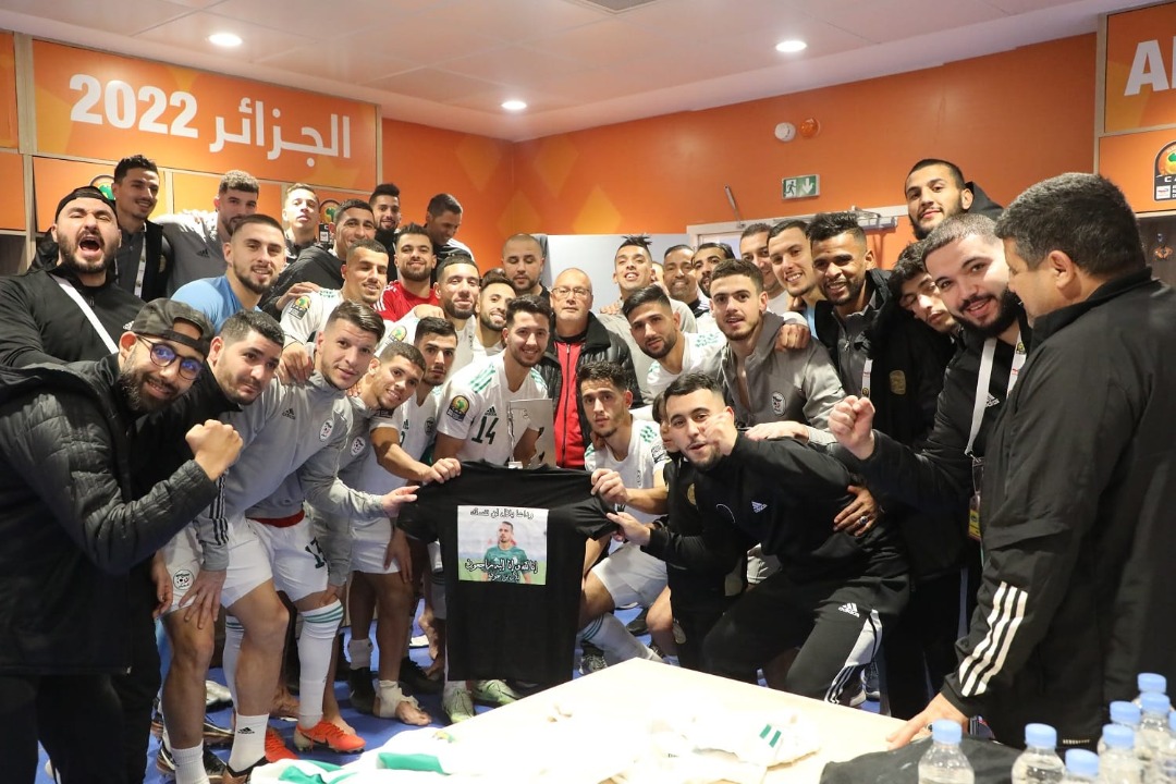 أخذ لاعبي المنتخب الوطني صورة تذكارية مع قميص يحمل صورة اللاعب الراحل بلال بن حمودة، الذي وافته المنية الصائفة الماضية بعد تعرضه لحادث مرور أليم رفقة صديقه.