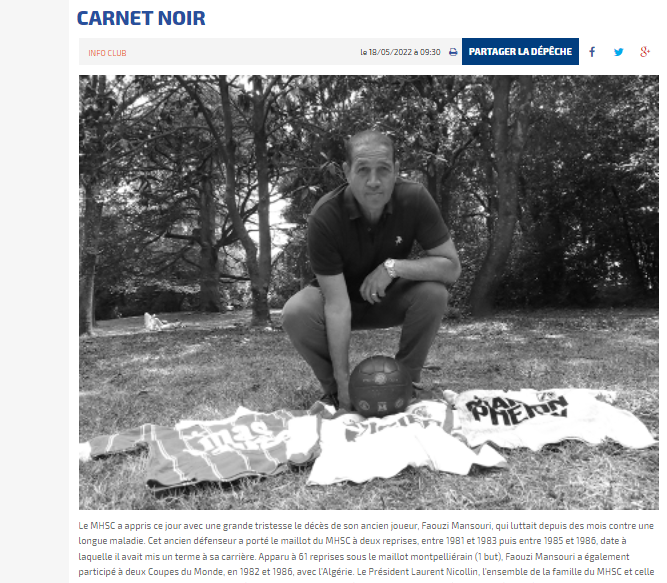 وقدم نادي مونبيليي الفرنسي، اليوم الأربعاء، عبر موقعه الرسمي، تعازيه لعائلة الفقيد.