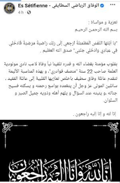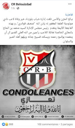 كما حرص فريقي وفاق سطيف، وشباب بلوزداد، علة توجيه تعازيهما، لفريق مولودية العلمة، وعائلة الفقيد اثر هذا المصاب الجلل.