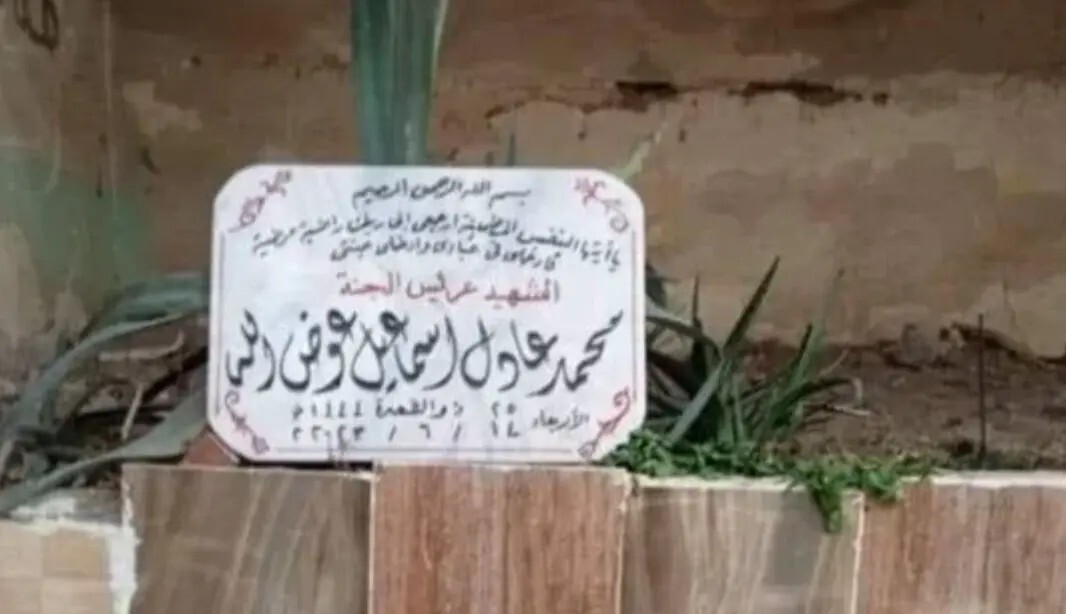 وانتقد رواد مواقع التواصل الاجتماعي في مصر وضع أسرة محمد عادل قاتل نيرة أشرف، لافتة على قبره. دون عليها اسمه وجملة “شهيد عريس الجنة”، إلا أنها اختفت بعد يوم واحد من وضعها.