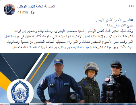 والتي راح ضحيتها الطالب الجامعي من جنسية زيمبابوية، حيث كُلّلت جهود قوات الشرطة بتوقيف المشتبه فيهم، وتقديمهم أمام الجهات القضائية المختصة.