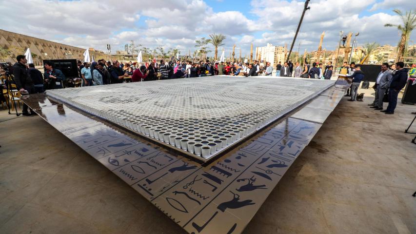 وشهد ممثلون عن موسوعة “غينيس”، العمل الفني، الّذي نفذها مجموعة من الشباب المصريين على مساحة 60 مترا في ساحة المتحف الكبير قبل تسجيل اللوحة رسميًا في الموسوعة.