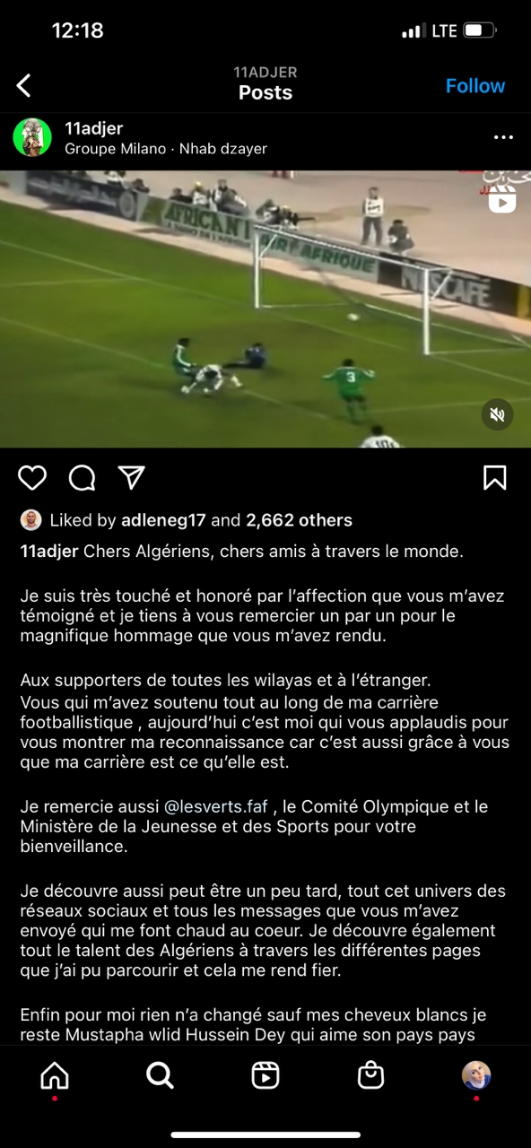 وقال رابح ماجر عبر صفحته الرسمية على “انستغرام” : “سأبقى أنا المناصر الأول للخضر و كرة القدم الجزائري، كما أتمنى الأفضل خلال الشان”.
