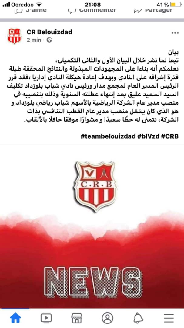 تراجعت شركة “مادار” المالكة لأغلب أسهم فريق شباب بلوزداد عن قرار ابعاد “سعيد عليق” بعد سويعات فقط من اعلانها ذلك.