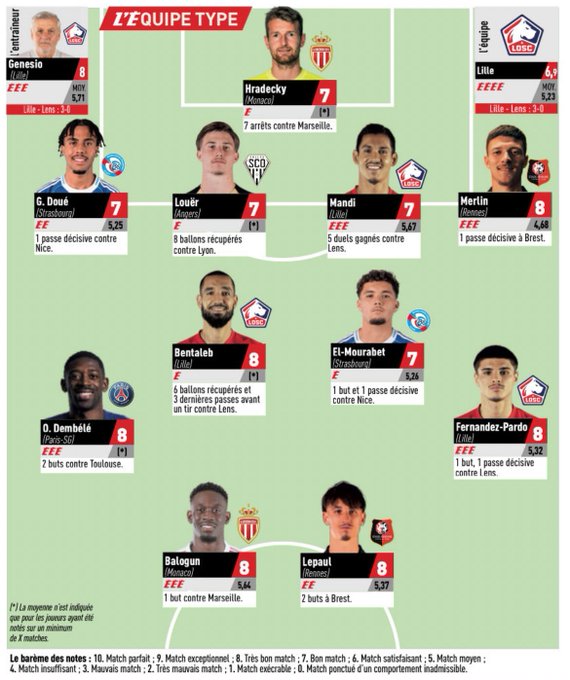 ومنحت ذات الصحفية علامة (8/10) لبن طالب، عن مردوده في هذه الجولة ضد نادي لانس، فيما نال مواطنه ماندي، علامة (7/10).