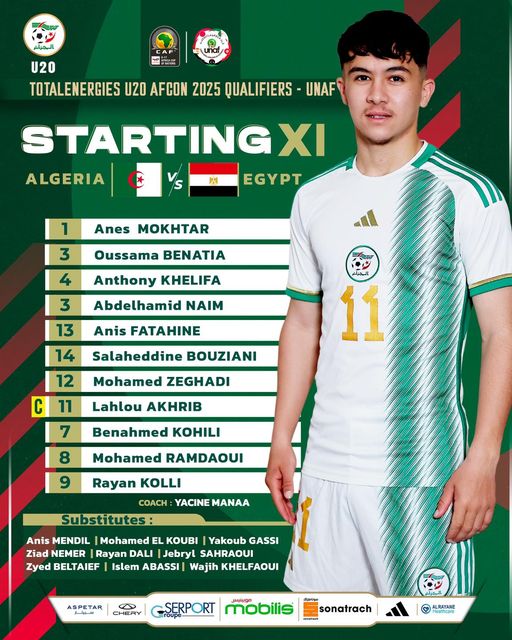 كشف مدرب المنتخب الوطني لأقل من 20 سنة ياسين مانع عن التشكيلة الأساسية للاعبيه. الذي سيواجهون منتخب مصر ضمن دورة لوناف المؤهلة إلى كأس امم افريقيا 2025.