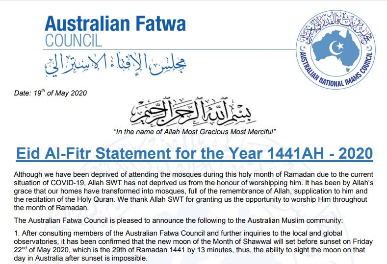مجلس الإفتاء الأسترالي يعلن يوم الأحد أول أيام العيد