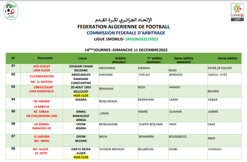وكشف الموقع الرسمي للاتحاد الجزائري لكرة القدم، تعيينات باقي حكام مباريات هذه الجولة والتي جاءت كاملة على النحو التالي: