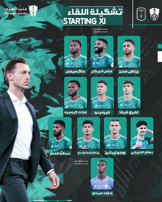 محرز أساسيا رفقة الأهلي أمام أبها في منافسة الكأس