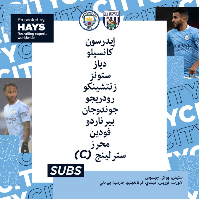 محرز سيقود هجوم السيتي رفقة رحيم ستيرلينغ فيل فودين وكذا المتألق مؤخرا بيرناردو سيلفا.