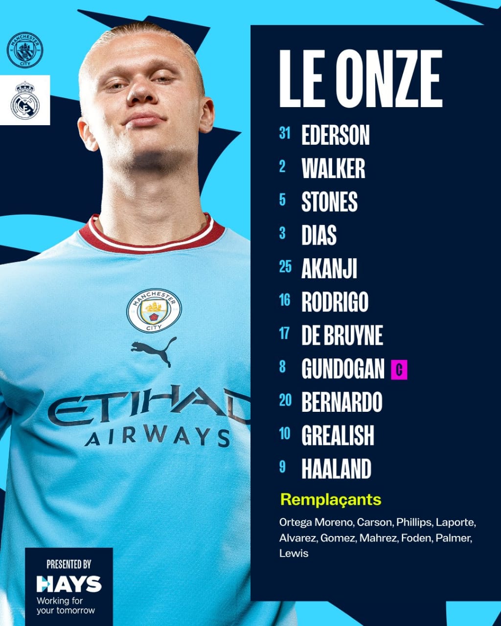كشف مدرب مانشستر سيتي بيب غوارديولا عن التشكيلة الأساسية التي سيعتمد عليها تحسبا لمباراة ريال مدريد.
