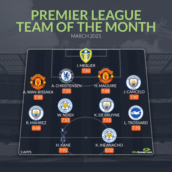 وجاء اختيار قائد الخضر، ضمن هذه التشكيلة، نظير مردوده خلال شهر مارس بألوان السيتي، أين نال تنقيط 8.68.