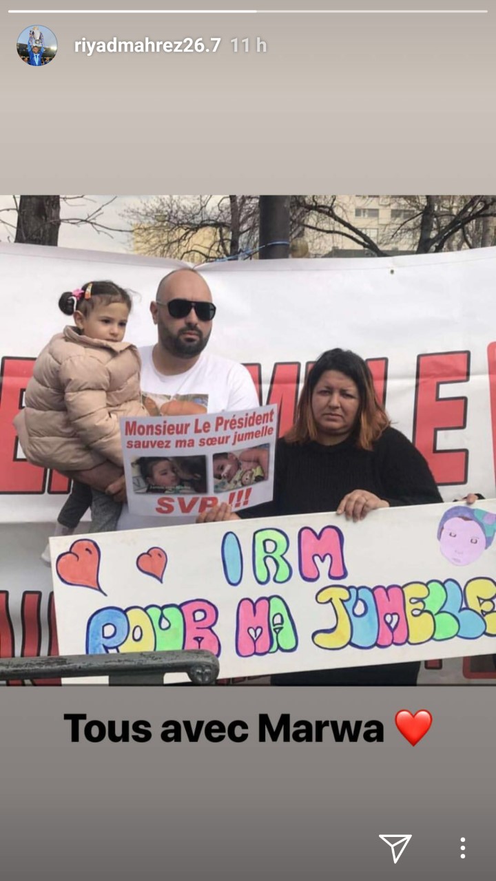 تضامن “رياض محرز” نجم الخضر مع الطفلة “مروى” التي تعاني في صمت في ضواحي “مارسيليا”، أين قرر والديها القيام بوقفة إحتجاجية أمام مستشفى “تيمون”.