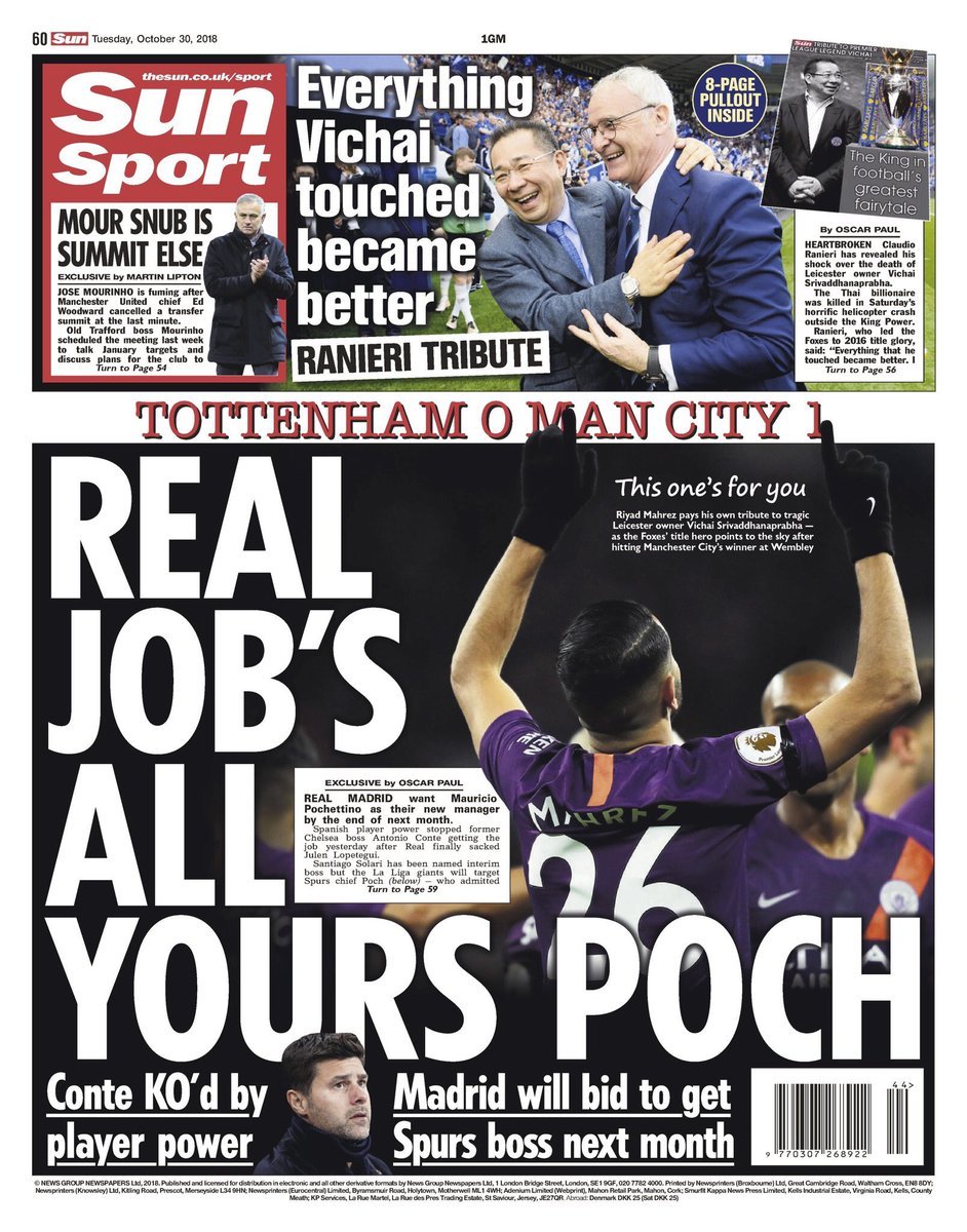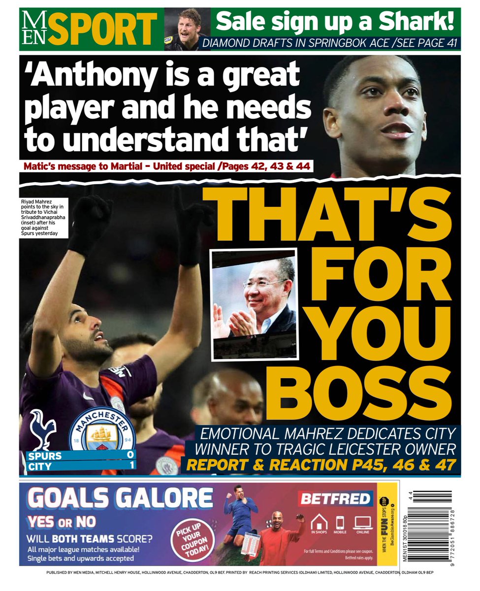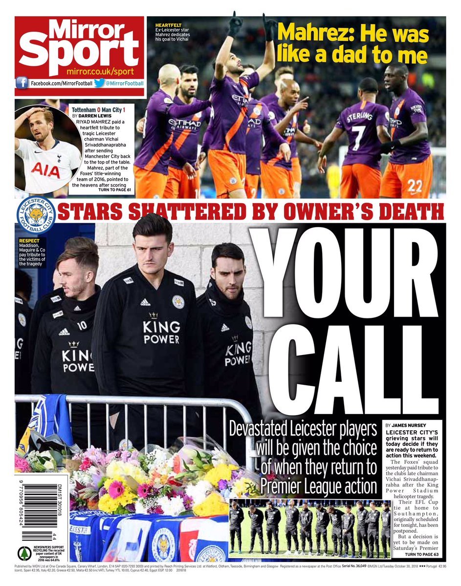 أما صحيفة “الميرور”: “محرز: فيشاي كانت بمثابة الأب بالنسبة لي”.