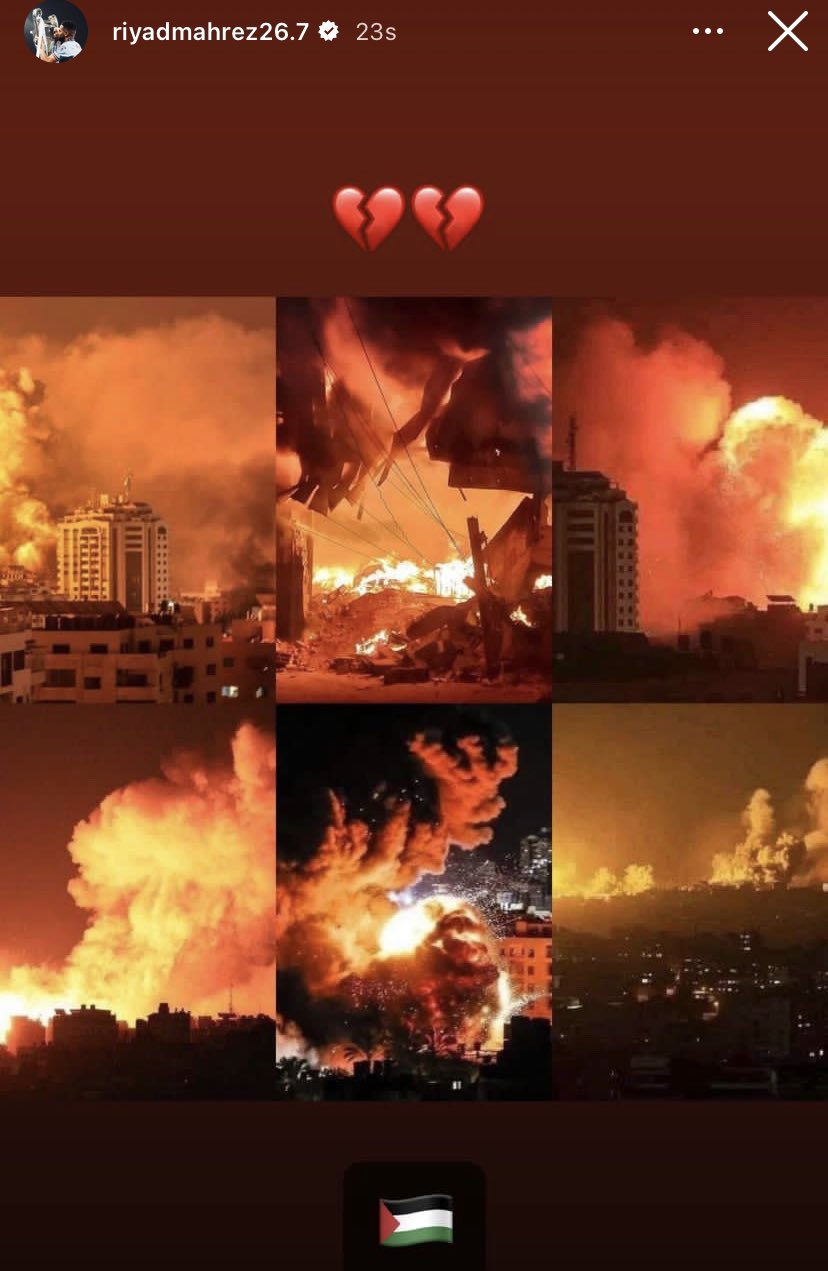جدّد الدولي الجزائري رياض محرز، نجم نادي الأهلي السعودي، دعمه وتضامنه الكبير مع الشعب الفلسطيني.