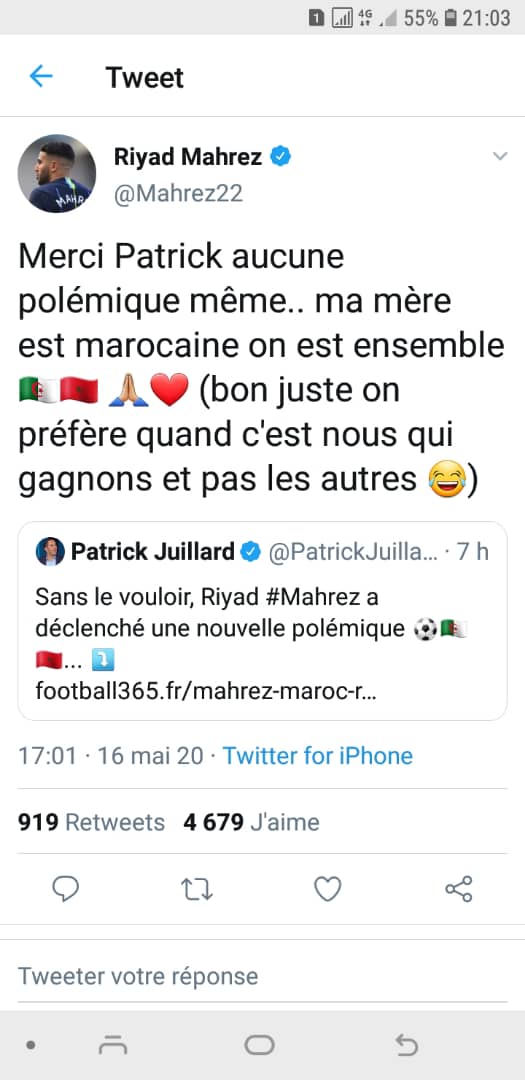 محرز يخرج عن صمته ويوضح تصريحاته ضد المغاربة