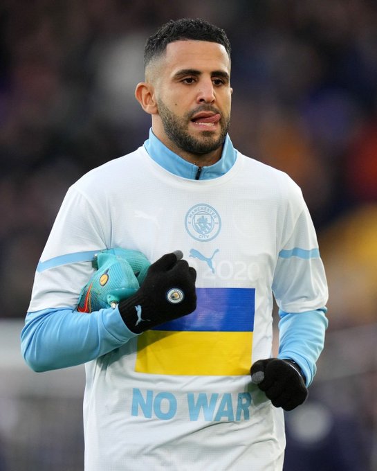 يذكر. ان محرز لعب مباراة أمس، مع فريقه مانشيستر سيتي أمام ايفرتون التي رفع فيها لاعبو ايفرتون و السيتي علم أوكرانيا.