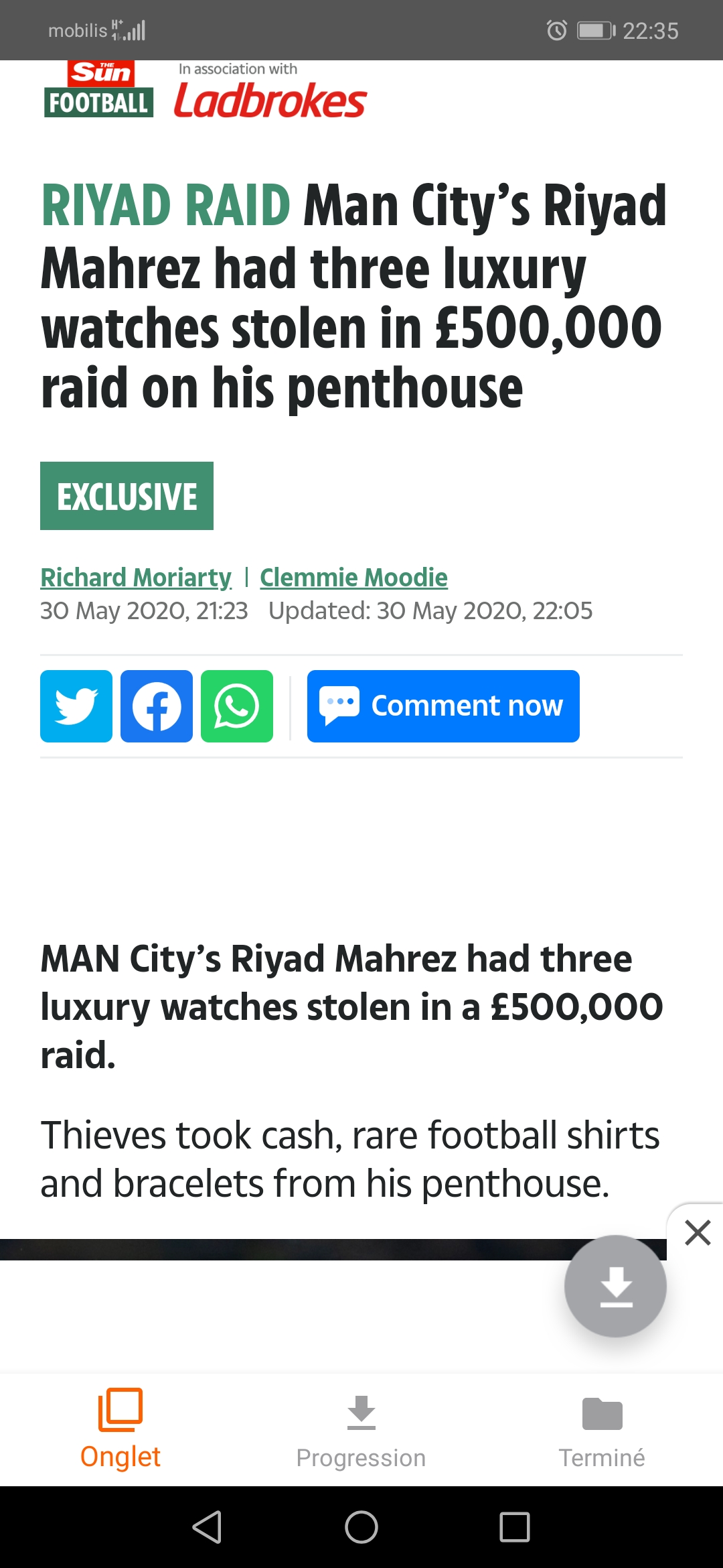 فجرت صحيفة “ذا الصن” البريطانية سهرة اليوم السبت مفاجأة مدوية بعد تأكيدها تعرض منزل “رياض محرز” لعملية سطو من قبل مجهولين.