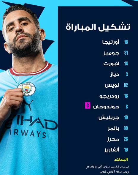 محرز يُزين التشكيلة الأساسية للسيتي أمام تشلسي