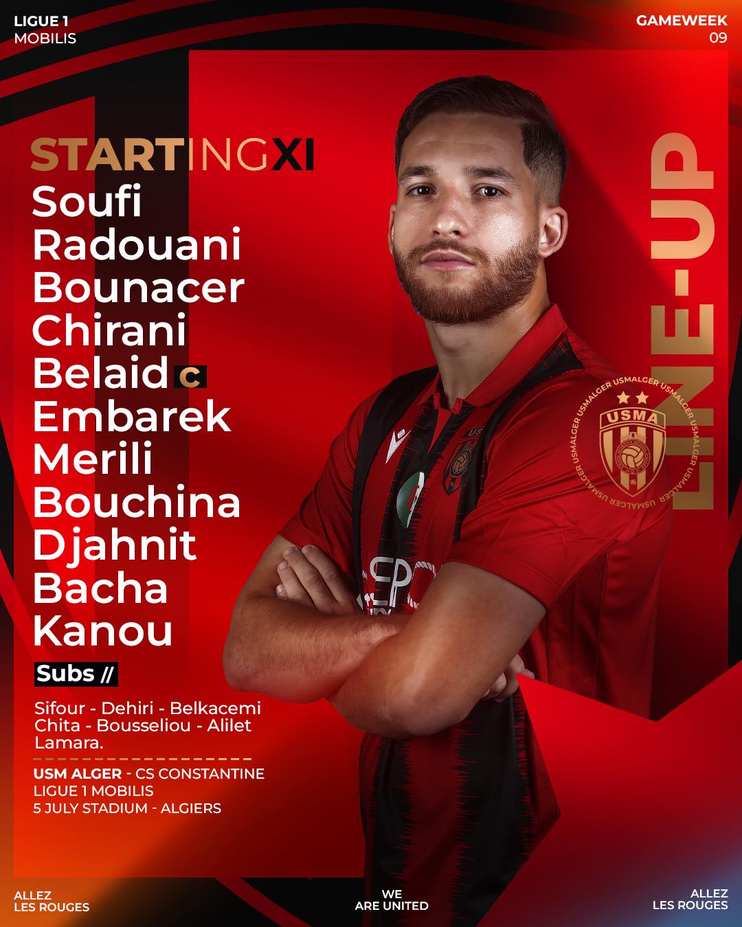 كشف مدرب إتحاد العاصمة غاريدو عن التشكيلة الأساسية التي سيعتمد عليها خلال مواجهة شباب قسنطينة برسم الجولة التاسعة “مباراة متأخرة”.