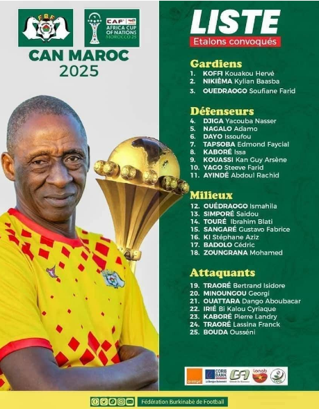 وضمت القائمة التي كشف عنها الناخب البوركينابي، والمعنية بنهائيات كأس أمم إفريقيا أسماء 25 لاعبا.