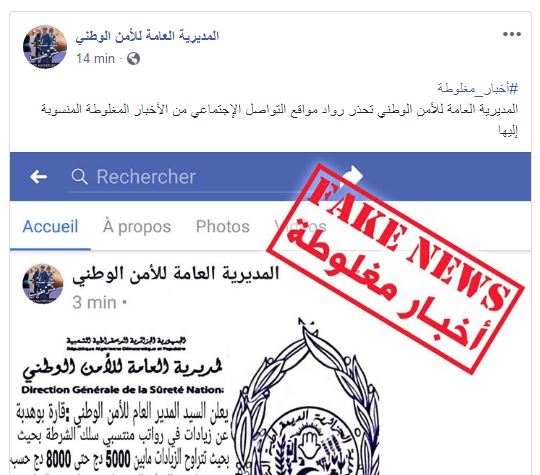 حذرت المديرية العامة للأمن الوطني مرة أخرى رواد مواقع التواصل الإجتماعي من الأخبار المغلوطة المنسوبة إليها.