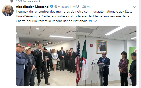 وبحسب مانشره وزير الخارجية ، عبر موقع “التويتر” أن اللقاء جاء في إطار إحتفال الجزائر بالذكرى 13 لميثاق السلم والمصالحة الوطنية.