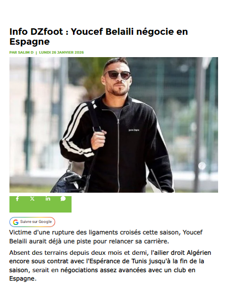 وفي السياق ذاته، أكدت مصادر موثوقة أن عائلة اللاعب شرعت في البحث عن سكن بمنطقة كوستا بلانكا، إلى جانب نادٍ مناسب لشقيقه الأصغر فارس بلايلي، الذي ينشط حاليًا في صفوف جمعية سليمان التونسي، ما يعكس جدية الخطوة واقترابها من التجسيد على أرض الواقع.