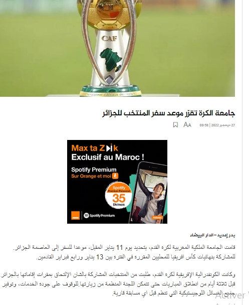 حدّدت الجامعة المغربية لكرة القدم موعد سفر المتخب المحلي المغربي إلى الجزائر للمشاركة في منافسة كاس إفريقيا للمحلّيين.