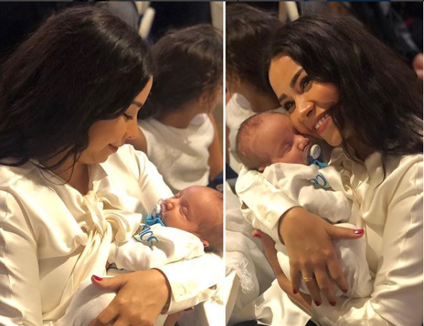 إلا أنها هذه المرة نشرت صورة لها وهي تحتضن طفلاً رضيعاً دون أن توضح علاقتها به.
