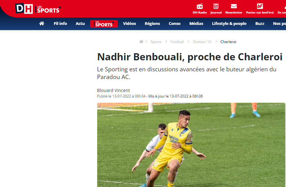 وحسب تقرير لموقع “دي أش” البلجيكي، فإن لاعب بارادو بن بوعلي، في محادثات متقدمة مع فريق قريب رويال شارلوروا البلجيكي.