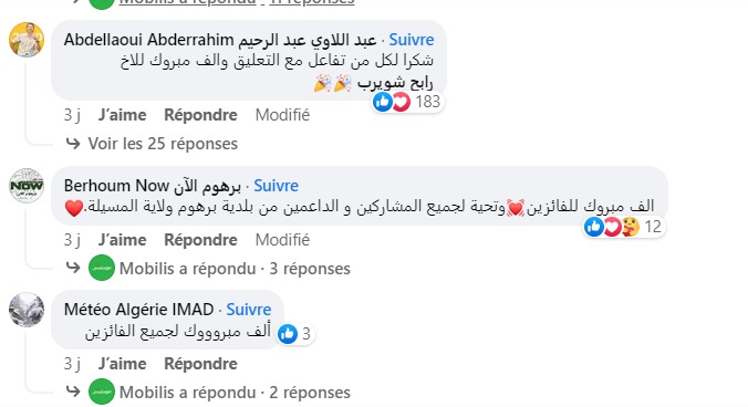 ولم يتوان أصحاب الحظ السعيد. ممن تنقلوا مجانا إلى “كوت ديفوار” في التعبير عن امتنانهم الكبير لـ “موبيليس”. التي وضعتهم في أفضل الظروف منذ وصولهم إلى هناك. مثلما يظهر في تعليقات الأنصار على صفحة الشركة الرسمية عبر “فيسبوك”.